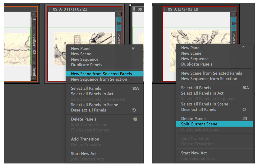 2. Identify Shots/Scenes and Panels: If you haven't made this distinction already, you will need to use the combine and split panel tools in SBP to distinguish between panel and scene/shot changes. I find this process is easiest in the Thumbnail View.